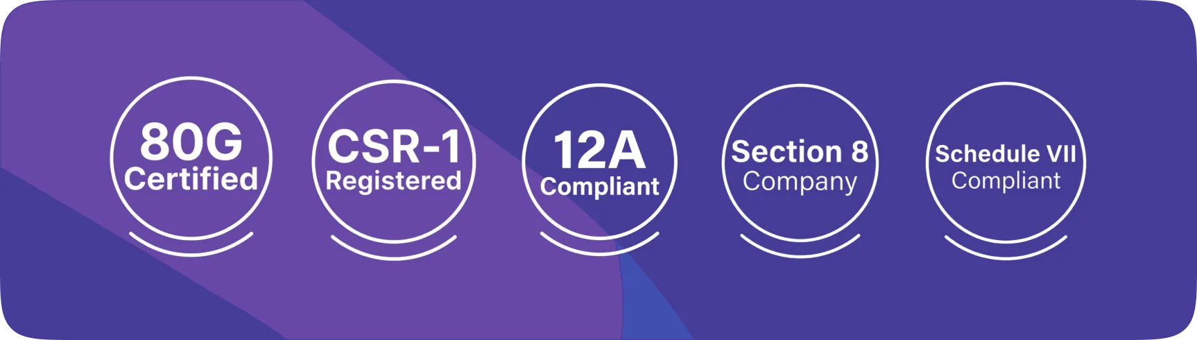 We are 80G certified, CSR-1 registered, and 12A compliant โ enabling fully tax-compliant CSR deployment for all corporate partners.
